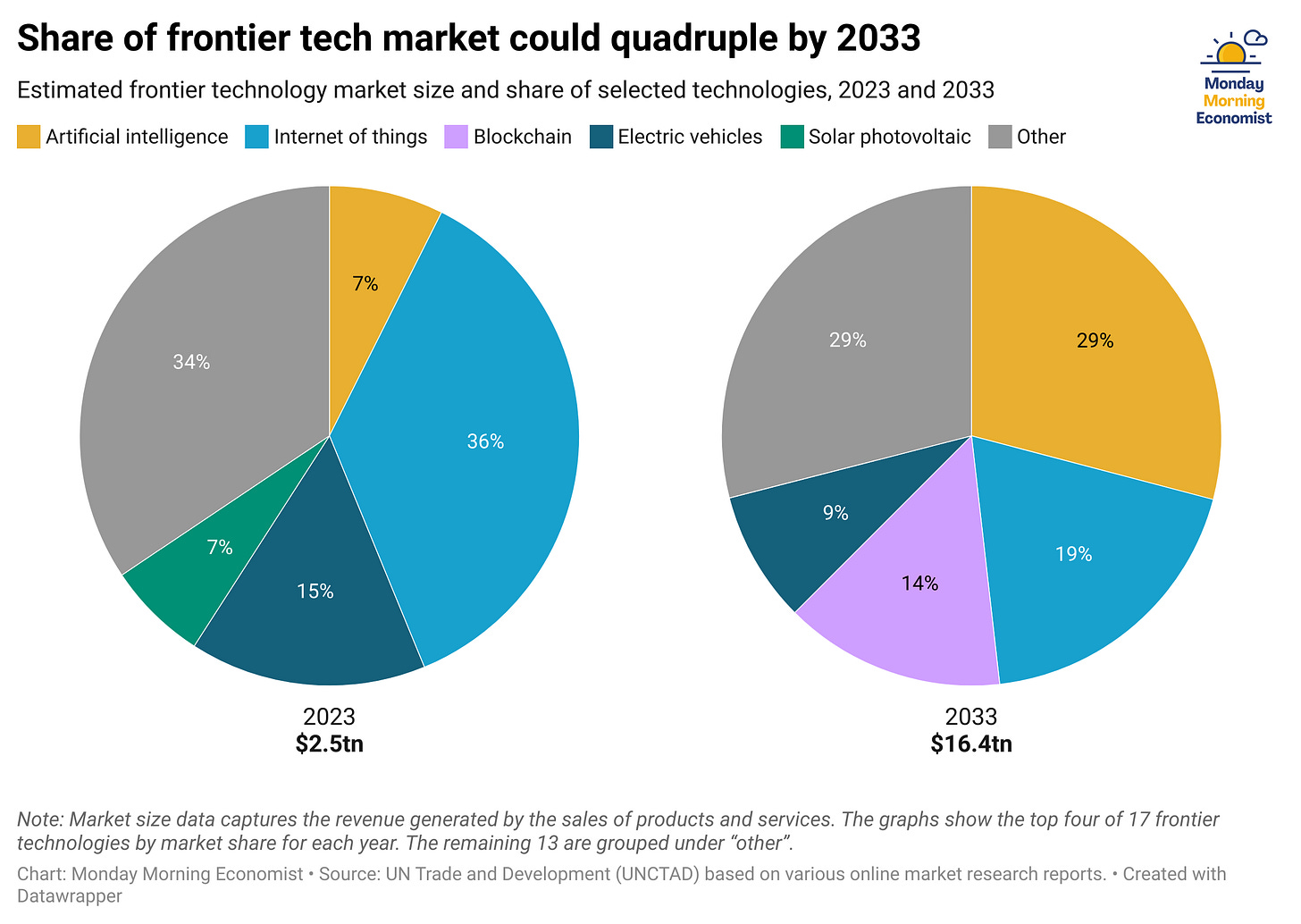 The global artificial intelligence market will soar from $189 billion in 2023 to $4.8 trillion by 2033, a 25-fold increase in just a decade [UN Trade and Development Report]
