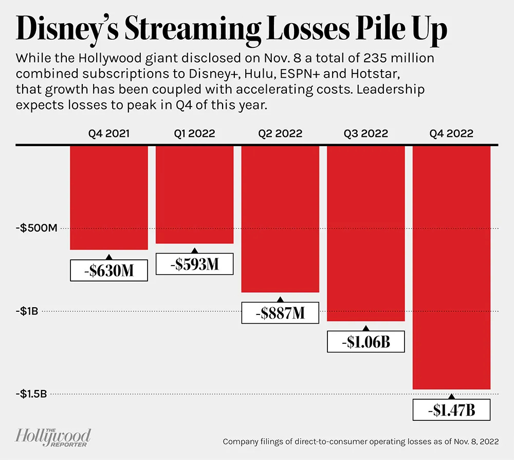 Legacy cable companies like Charter need to survive to continue generating the profits that entertainment companies rely on to support their streaming services. While streaming services may eventually become the future of entertainment, they are currently operating at a loss, collectively losing billions of dollars each year. Disney’s struggles have been well-documented since they first launched Disney+ at the end of 2019.