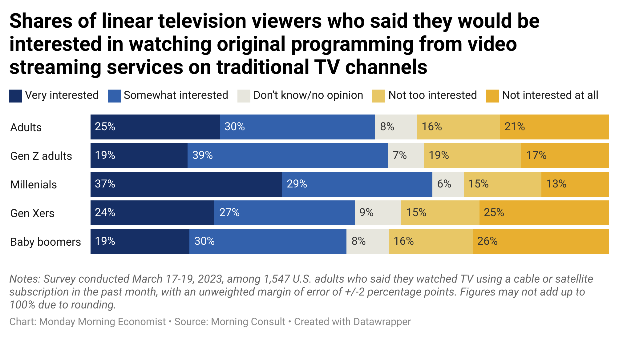 The cord-cutting revolution continues to be a movement where consumers abandon traditional cable TV services in favor of streaming platforms that offer a more personalized and cost-effective viewing experience. The frustration of having to pay for channels or content they have little interest in has driven many to seek more tailored alternatives. Current cable subscribers want to see the original programming offered on streaming services: