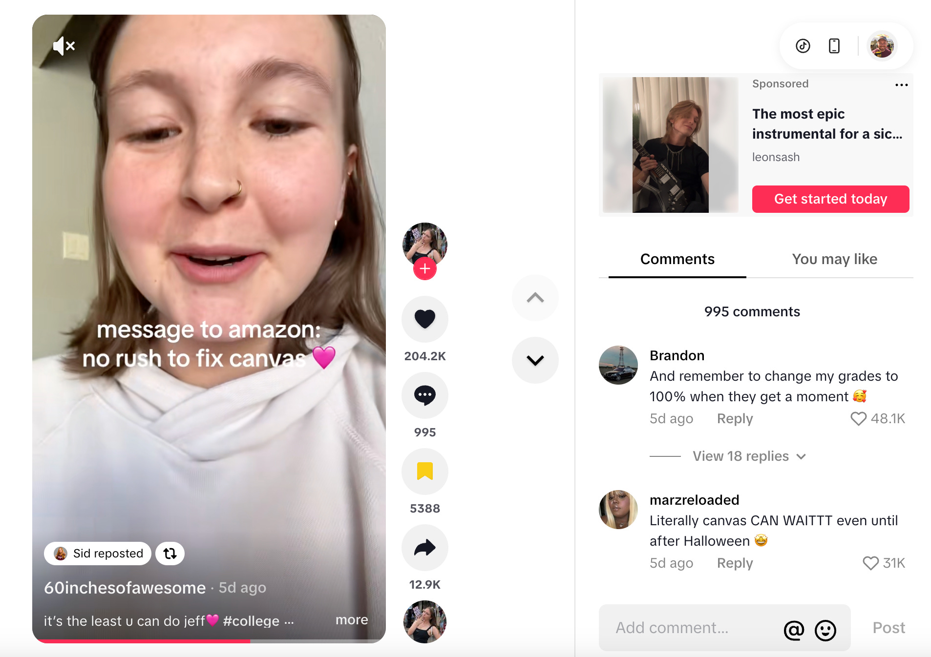 On Monday afternoon, college students took to TikTok for an urgent message for Amazon: Take your time fixing Canvas.
