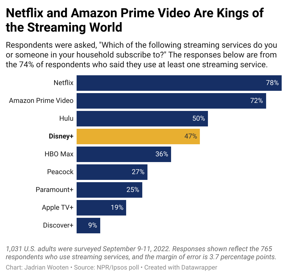 For the full fiscal year 2022, Disney’s Direct to Consumer division (Disney+, Hulu, and ESPN+) lost Disney $4 billion total [The Walt Disney Company]