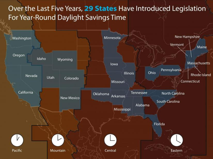 Congress went back and forth over the next few decades but eventually mandated the system federally under the Uniform Time Act of 1966. States were able to exempt themselves from observing Daylight Saving Time, but they could not change the start and end dates from the federally mandated dates. Over the past few decades, a number of states have introduced legislation for year-round Daylight Saving Time if the Department of Transportation would ever allow it.