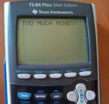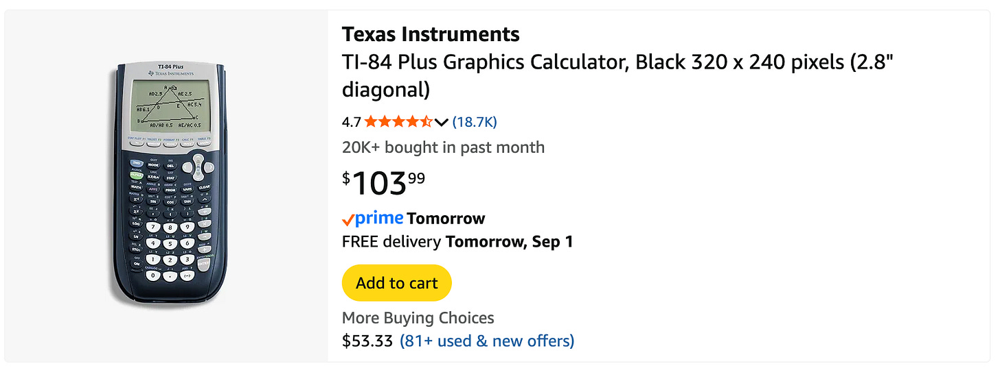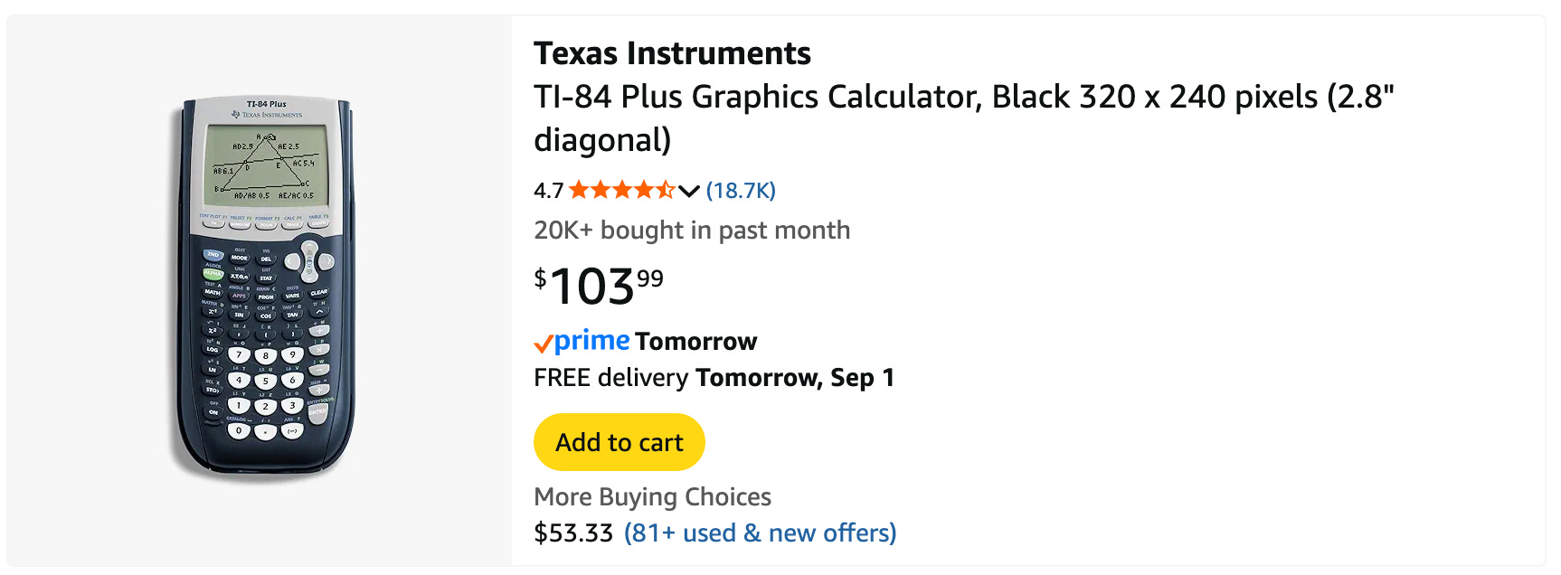 I still have my TI-83+, TI-89, and TI-89 Platinum from high school and College 1.0. Now that I'm back at College 2.0, there's pressure to get a TI Inspire CAS which has a bunch of new (and, admittedly, quite useful) features. But it's $170 and comes with a steep learning curve. The flagship offerings from HP, et al, are comparable if not superior, but that makes the learning curve even steeper. Fine at work, perhaps, but not something you want to be figuring out on an exam.