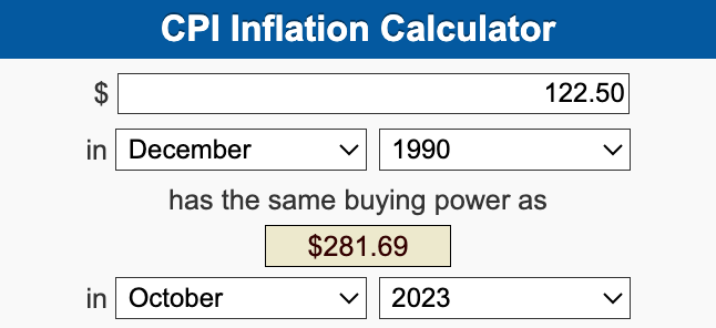 Looks like you get 3.51 today for the time price of one in 1990.