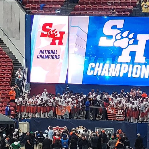 So why haven’t I finished any books this past week? A couple of days ago I flew to Frisco, Texas to watch my alma mater win their first national championship! It’s been an emotional weekend for sure.