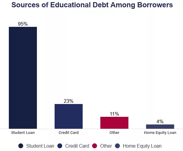 About 92% of all student debt are federal student loans; the remaining amount is private student loans [Forbes]