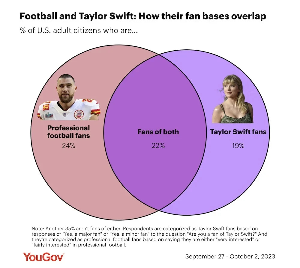 Let’s look at "The Swift Effect" more closely through these lenses. On the intensive margin, Taylor Swift’s presence at NFL games isn’t just fun for Chiefs fans; it’s resonating across the league. Sure, her presence has upset some fans who’d rather keep the pop culture and pigskin separate. But let’s not forget, the NFL isn’t exactly a stranger to controversies, both on the field and off. At the end of the day, football fans mostly agree she’s been good for the game.