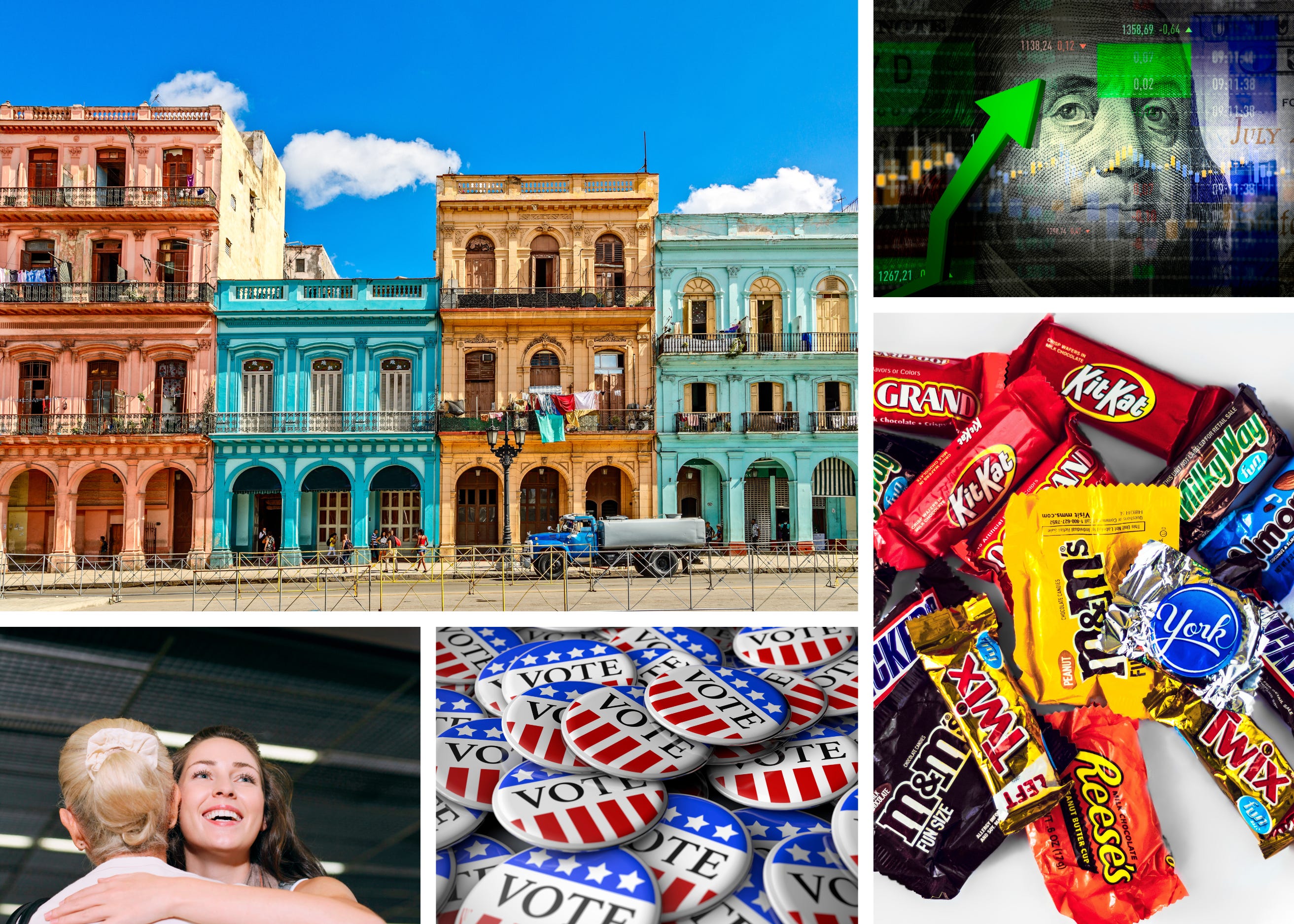 Cuban blackouts, American economy, airport hugs, election costs, and candy rankings