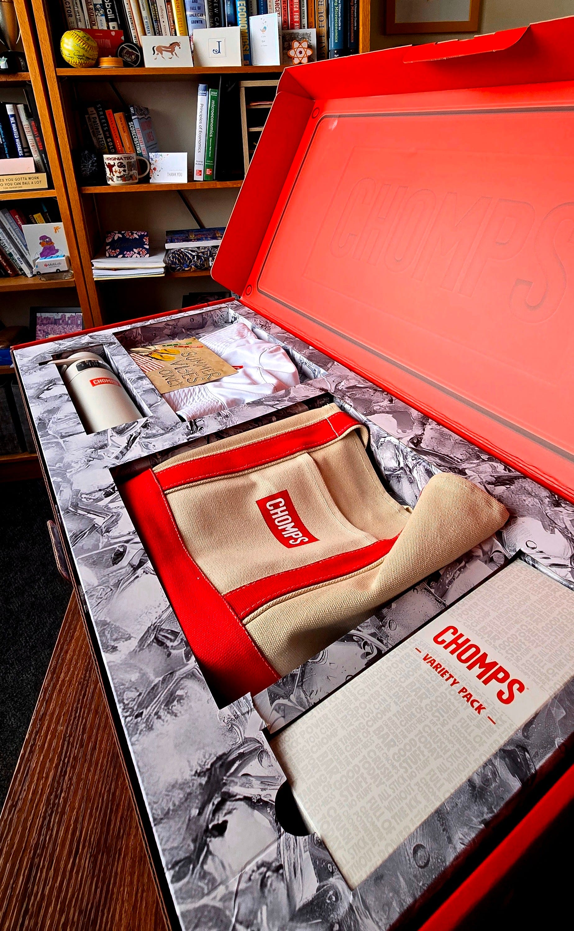 I talk with my students all the time about how products go viral and how brands build hype, and honestly, Chomps nailed it! Check out the photo below to see everything they sent over. Is the Chomps bag the next ‘it’ tote?
