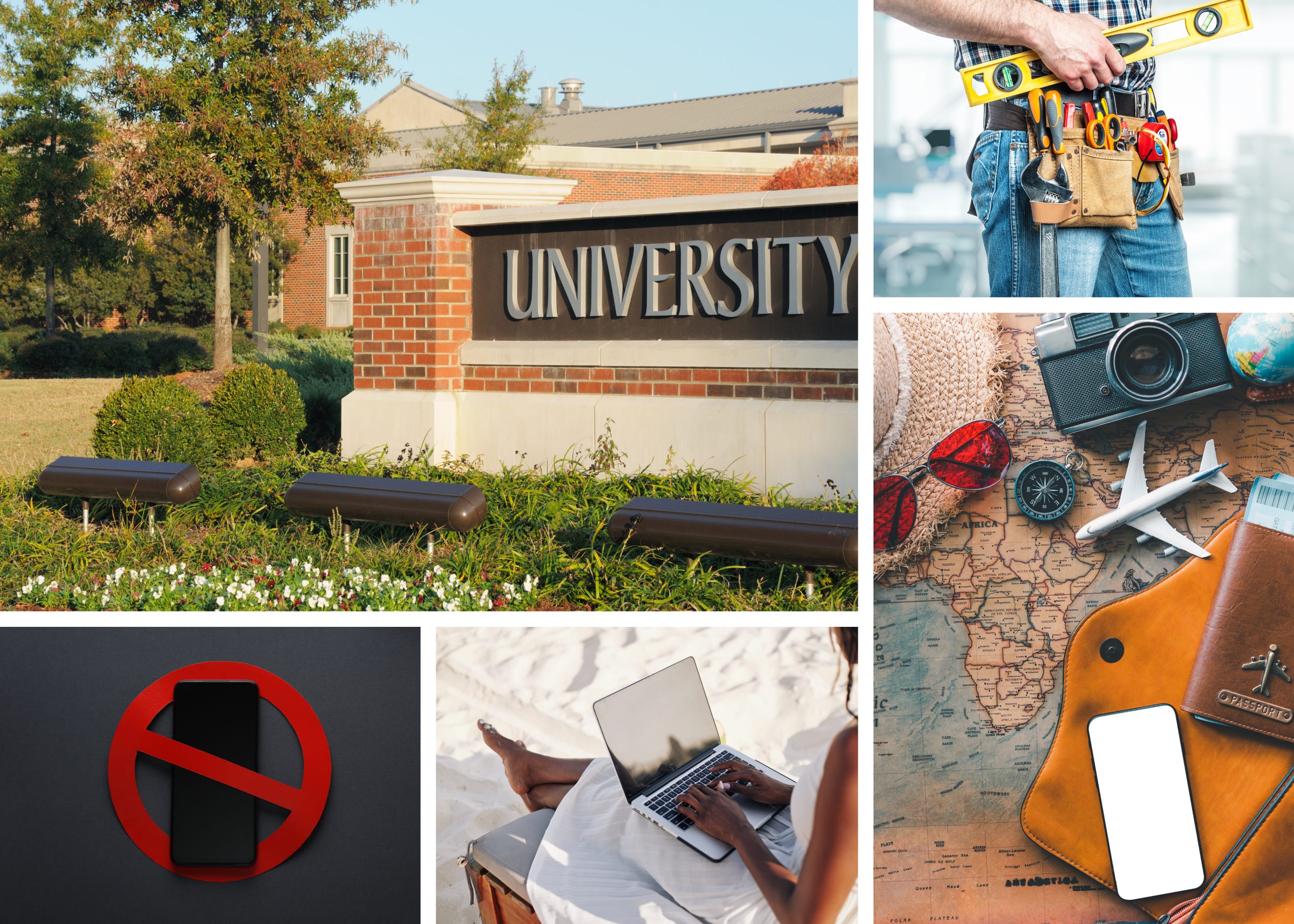 Walmart University, adulting, school phone bans, unplugging from work, and tourist hubs