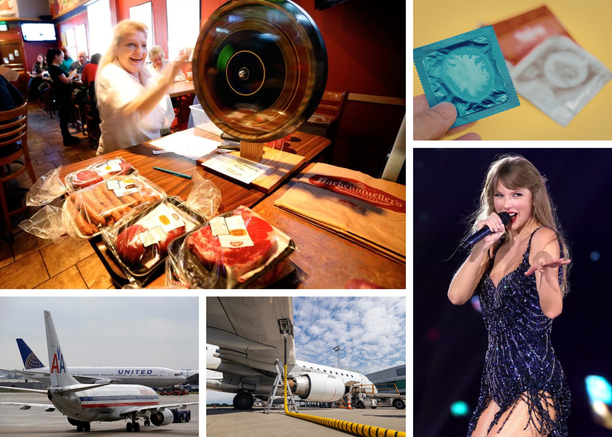 Meat raffles, condoms, airline mergers, jet fuel prices, and Taylor Swift