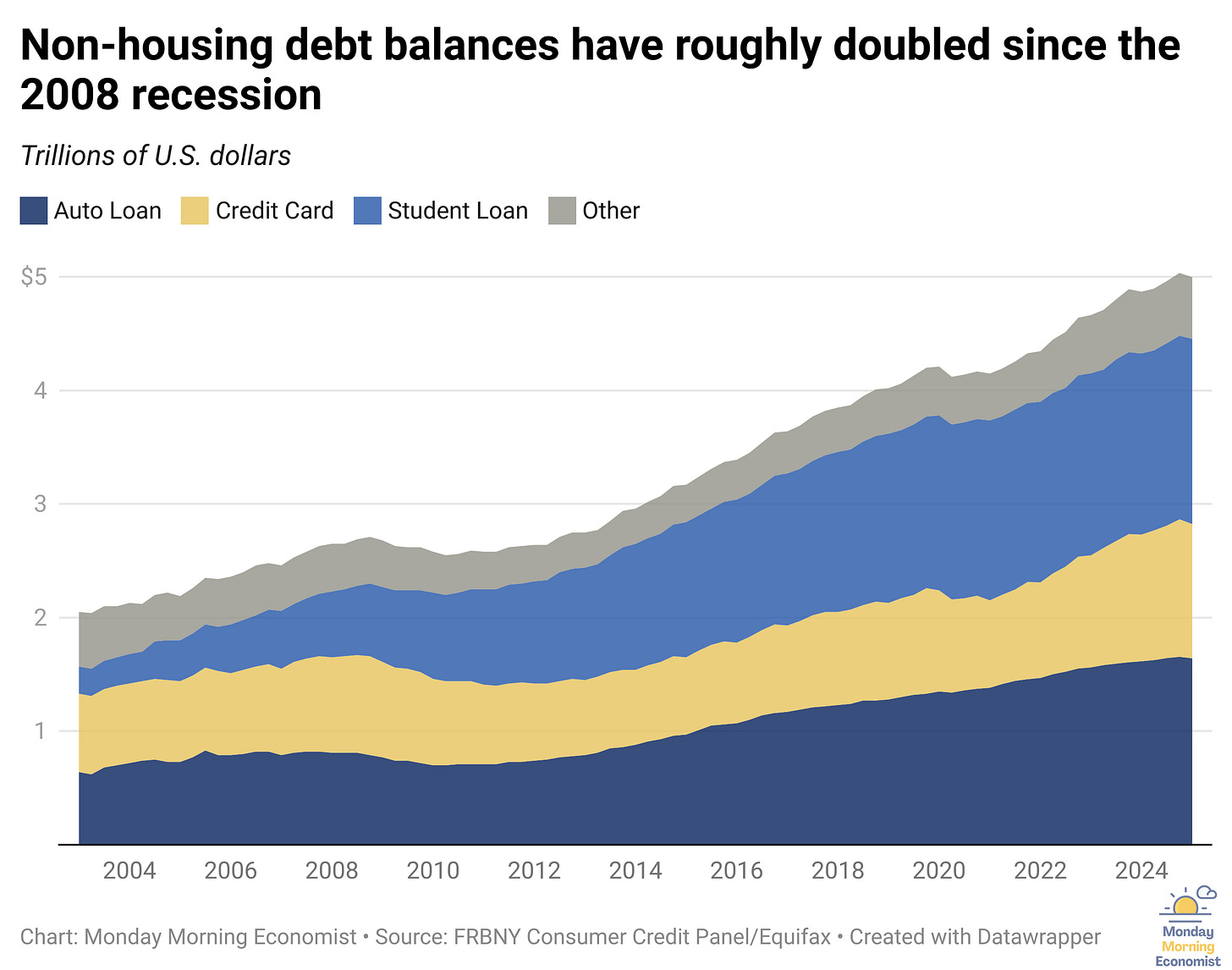 Approximately 12.3% of credit card balances are more than 90 days delinquent, the highest rate since 2011 [Federal Reserve Bank of New York]
